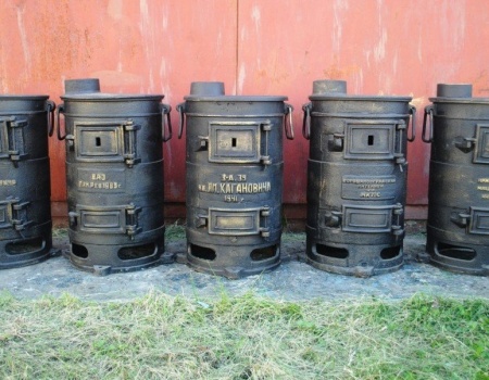 1. Печи нескольких заводов без надписи или с условным цифровым кодом типа "257" или "183". Также на некоторых ресурсах рекламируются как "армейские" или "солдатские" печи. Печи использовались и для обогрева теплушек/палаток. Качество достаточно низкое, однако работоспособность абсолютная.Такие печи могут быть даже тяжелее более дорогих печей-буржуек.